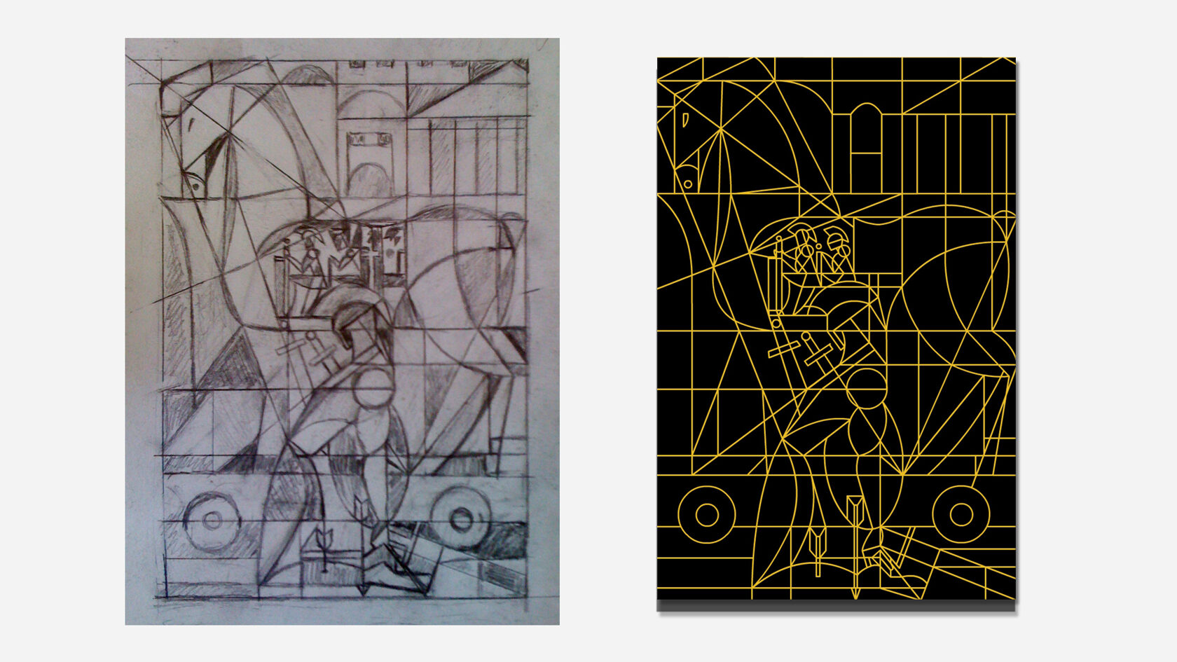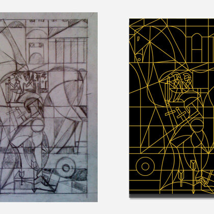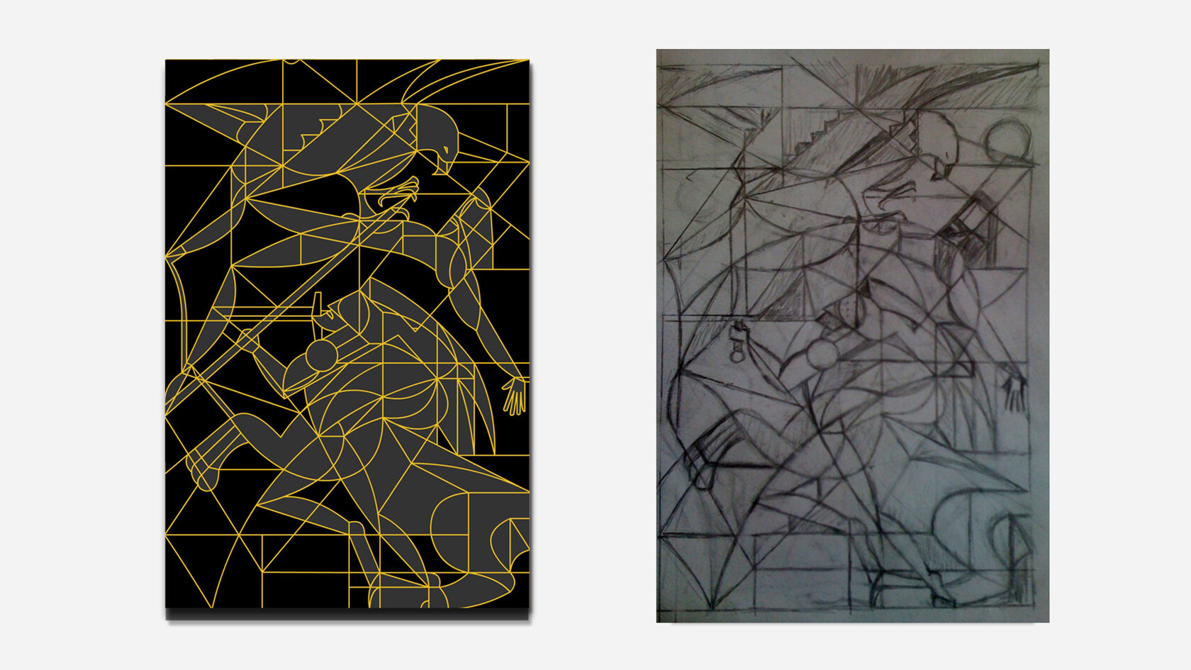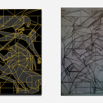 Below in the gallery are the preliminary sketches of Achilles and Prometheus, as well as the gold outline versions of these works.