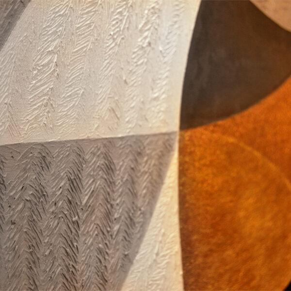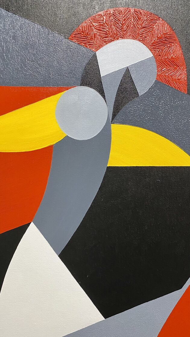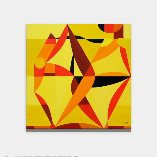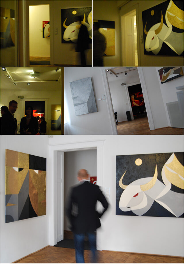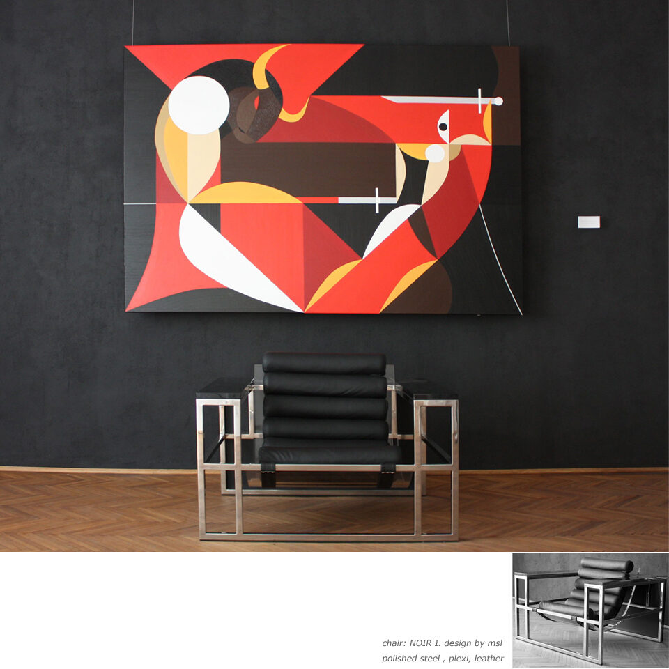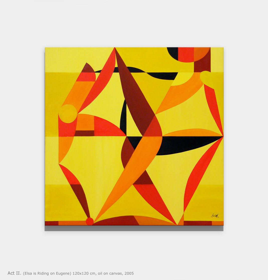 The initial sketch of the painting was originally created for the Kempinski Hotel, but in the end, they chose my other work, Grande Jetée Rouge, mentioned above. Nevertheless, I went ahead and painted the piece, and exhibited it in California, at the Avran Art Gallery in Laguna Beach—but through a twist of fate, it ultimately ended up in a private collection in Hungary, on the wall facing a window that overlooks the Pilis Mountains (one of the sacred mountains of the ancient Hungarian religion). The division of the painting into five parts was not only rooted in archaic numerology, but also had practical benefits, as it made it easier to transport the work to the USA. I completed about 70% of the painting in Hungary, continued working on it in Miami, and the final brushstrokes were added in California, at the gallery, on the night before the opening.