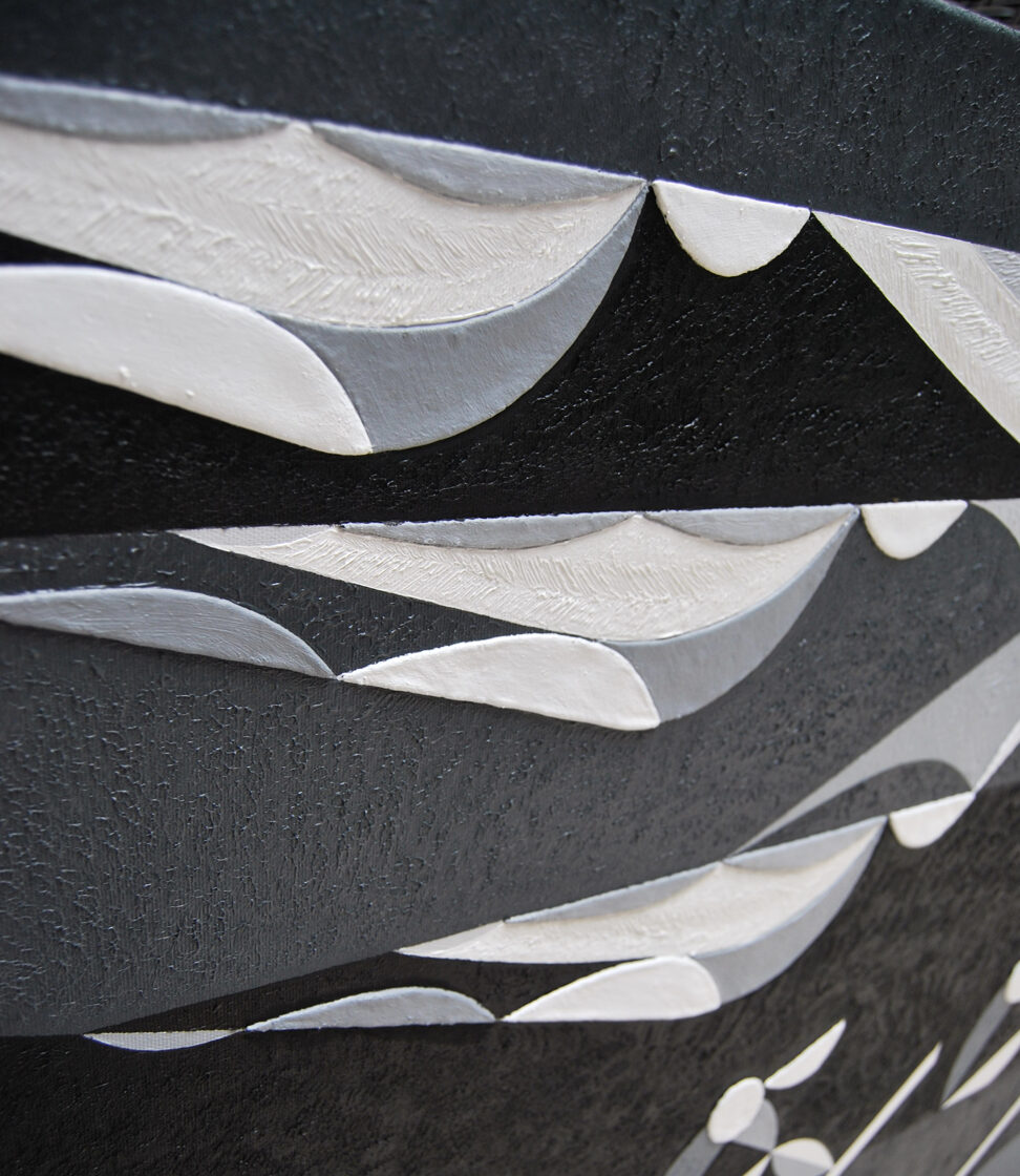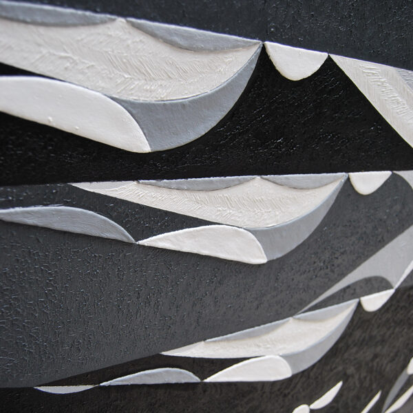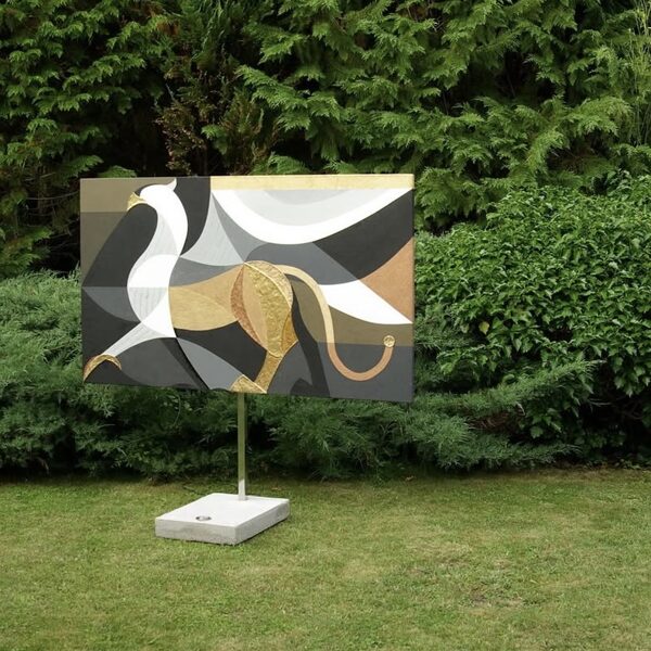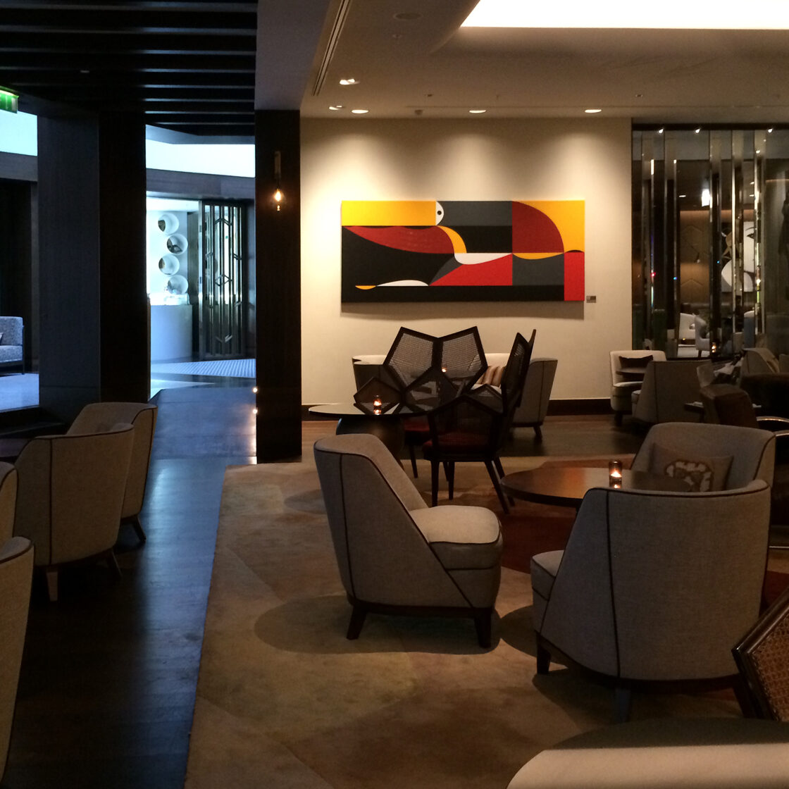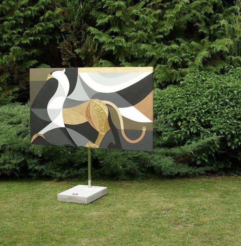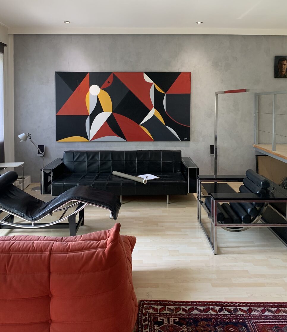 The initial sketch of the painting was originally created for the Kempinski Hotel, but in the end, they chose my other work, Grande Jetée Rouge, mentioned above. Nevertheless, I went ahead and painted the piece, and exhibited it in California, at the Avran Art Gallery in Laguna Beach—but through a twist of fate, it ultimately ended up in a private collection in Hungary, on the wall facing a window that overlooks the Pilis Mountains (one of the sacred mountains of the ancient Hungarian religion). The division of the painting into five parts was not only rooted in archaic numerology, but also had practical benefits, as it made it easier to transport the work to the USA. I completed about 70% of the painting in Hungary, continued working on it in Miami, and the final brushstrokes were added in California, at the gallery, on the night before the opening.