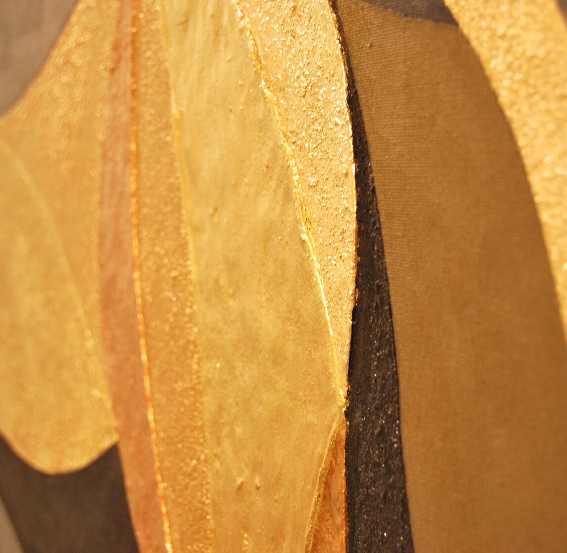 title: Grande Jetée Conture (ballet dancer series)medium: oil, gold on plastered canvas